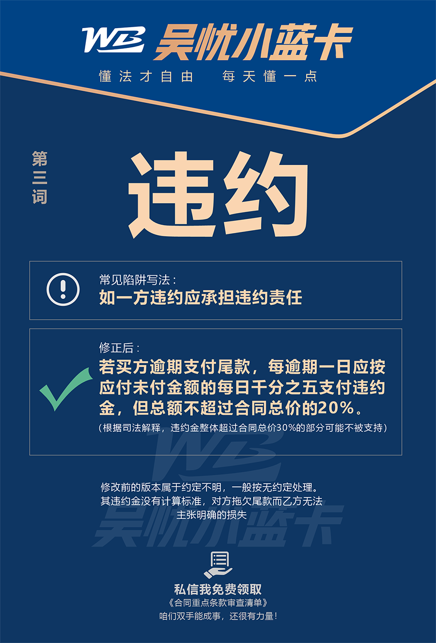 如果需要一份我们团队整理的 《合同重点条款审查清单》 私信免费发你。
